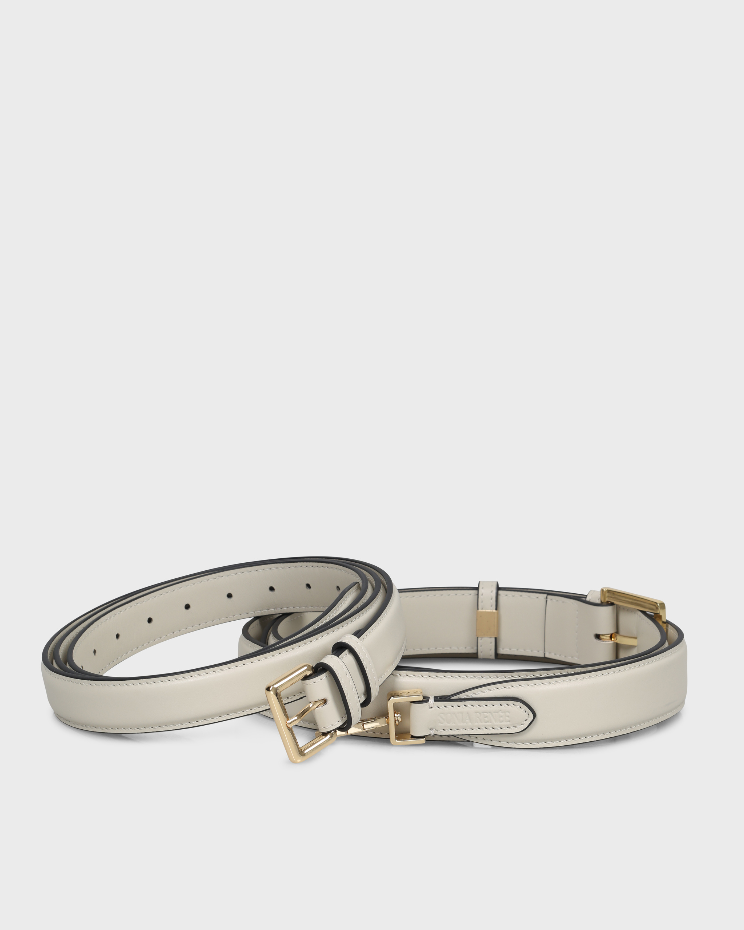 The Elizabeth Trunk includes two straps: A shoulder Strap and a waist belt.