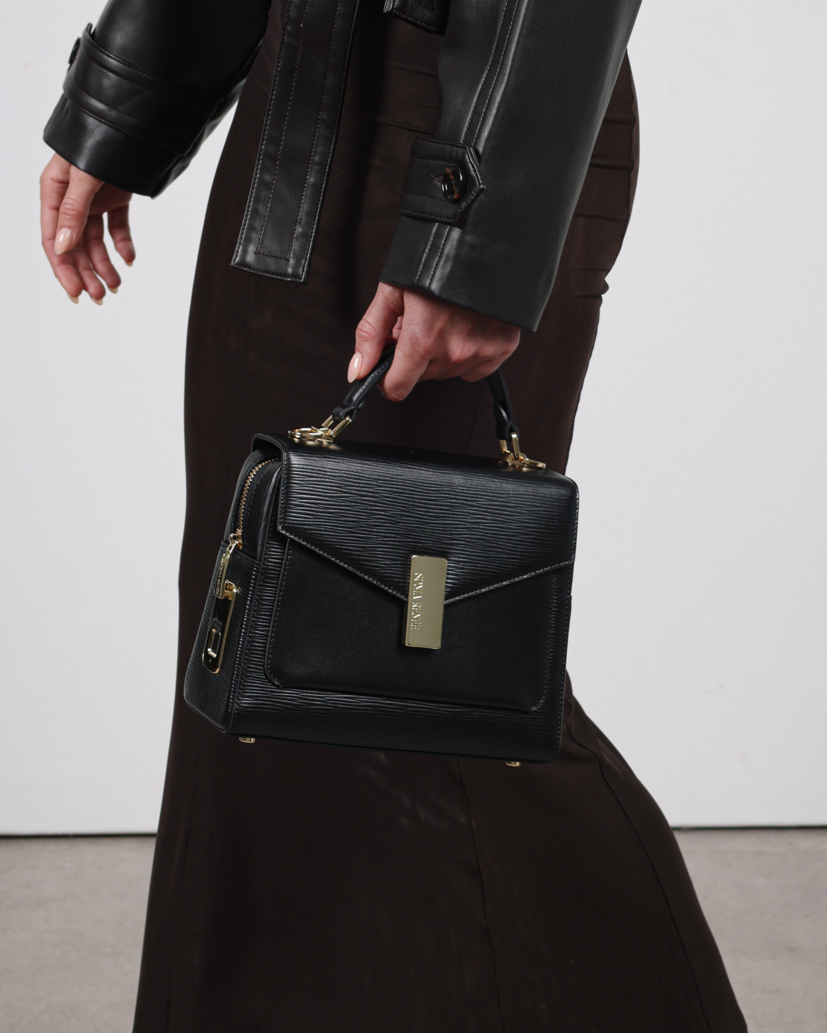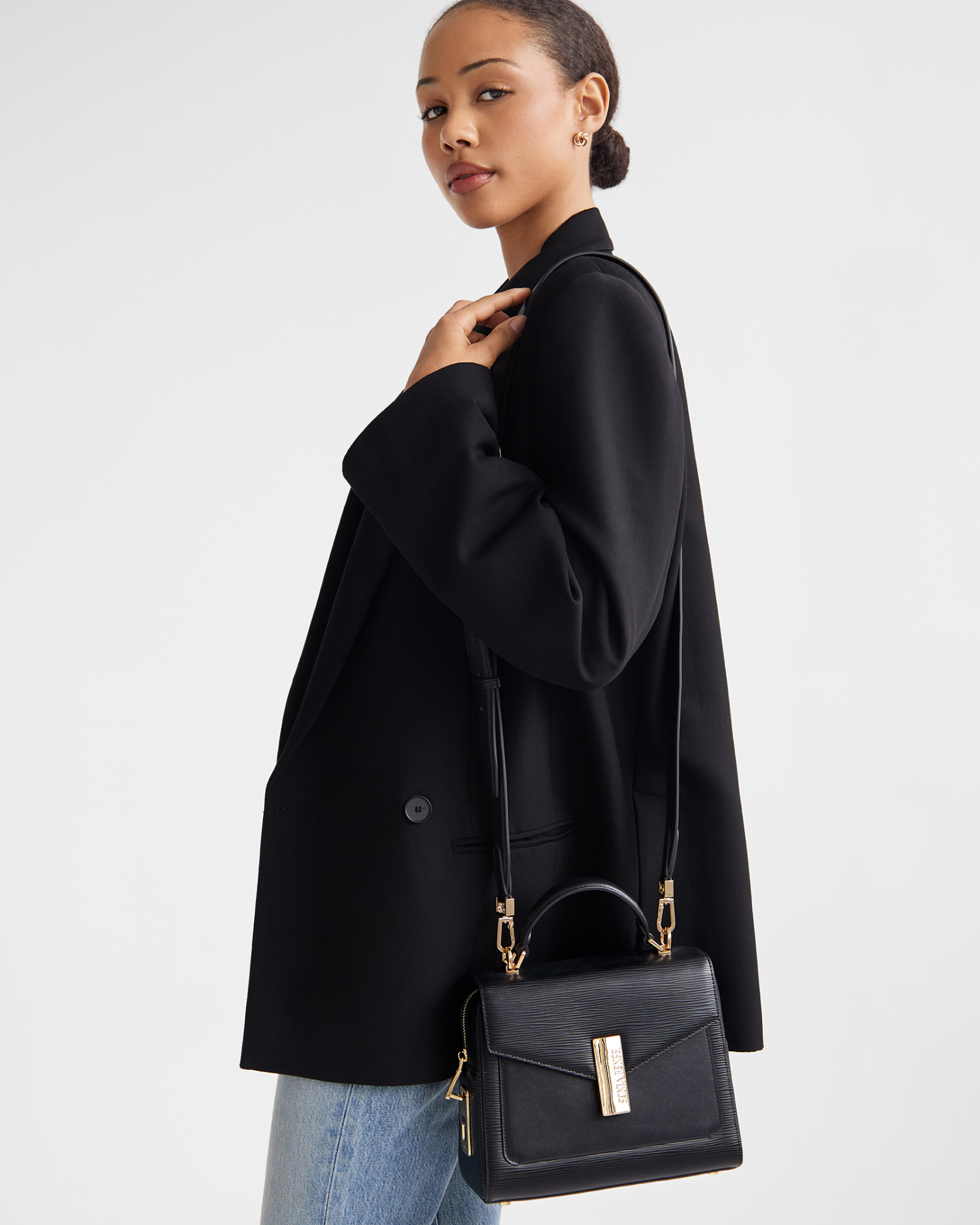 Our genuine Italian leather is LWG certified and hand selected for its shine and soft texture. Our custom hardware gleams in quiet gold tones, and interiors are constructed for modern living. Each handbag is complete with slash resistant fabric, RFID shielded pockets, and a fingerprint lock to guard the essentials you hold close.